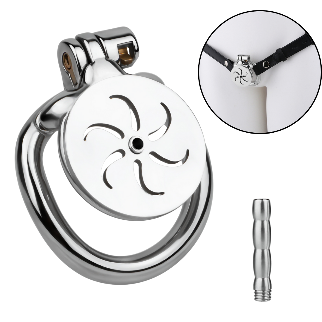 Flat Airflow Metal Chastity Cage for Men with Strap and Urethral Tube